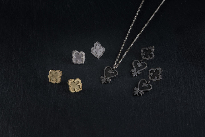 Entstanden ist der Beginn einer neuen Arbeitsreihe mit Ornamenten aus der Renaissance. Im besonderen der florentinischen Lilie widmete ich meine Aufmerksamkeit, um neue Schmuckstücke mit moderner Anmutung daraus entstehen zu lassen.